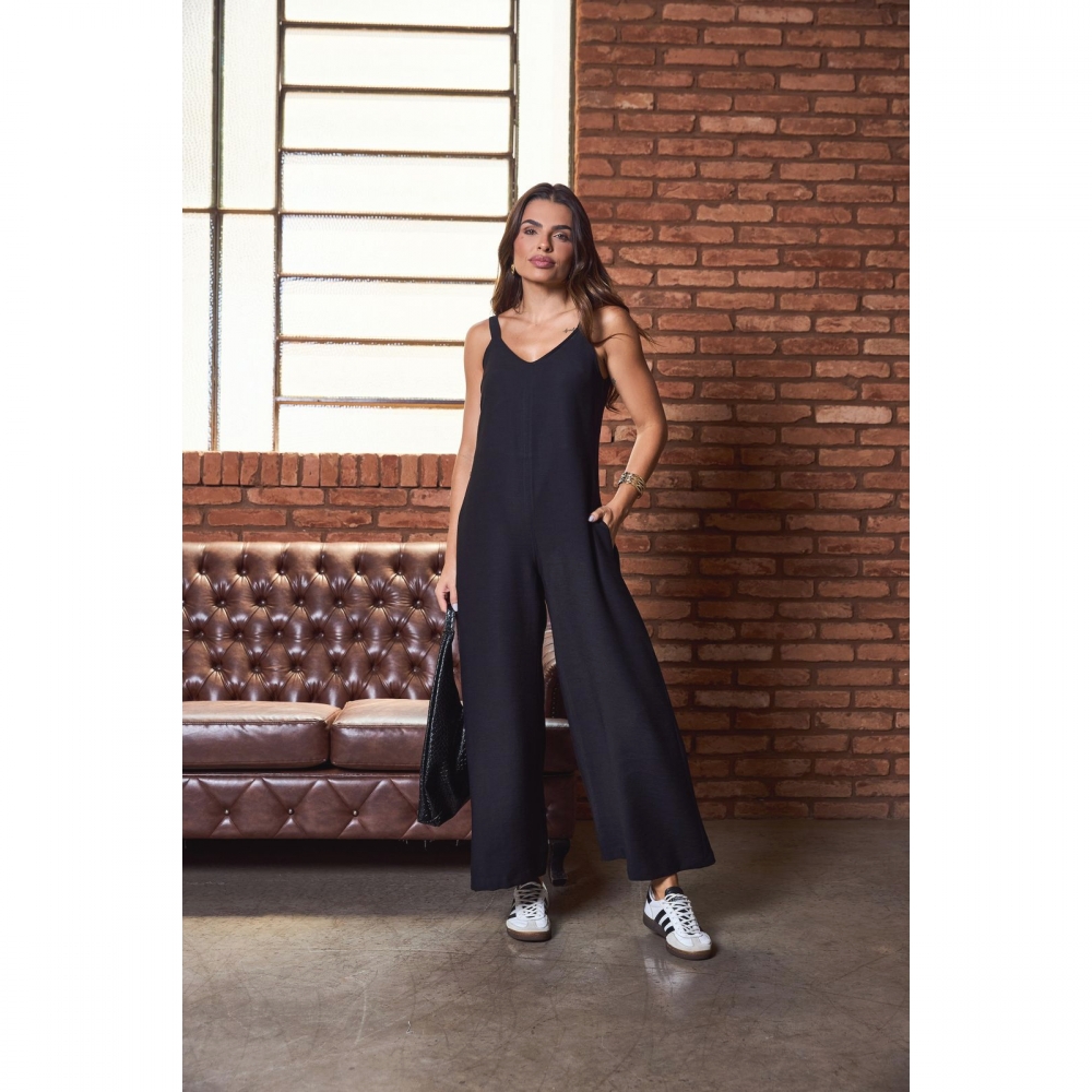 Macacão em Liocel com alças finas.
